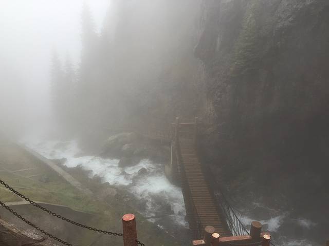 由于变天,山上雾超大,可想而知我们最后是没有看到天山的!!!!!!司机又兼职导游带着我们一直环着湖走,路途中的一个瀑布,估计至少上下差有过百米,挺漂亮的,就是太大雾没法拍~ 放几张给你们自行脑补下吧。