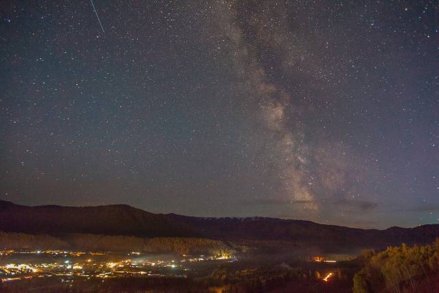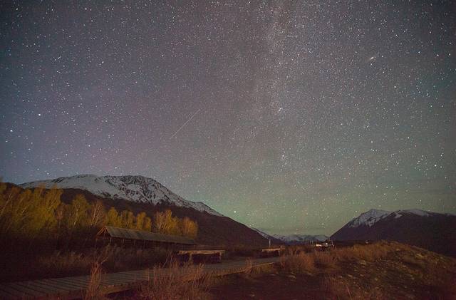 取景范围里几栋亮灯的房子,银河依然这么明显,可想而知那边的天空环境有多好。