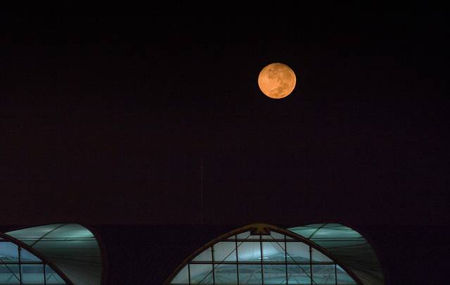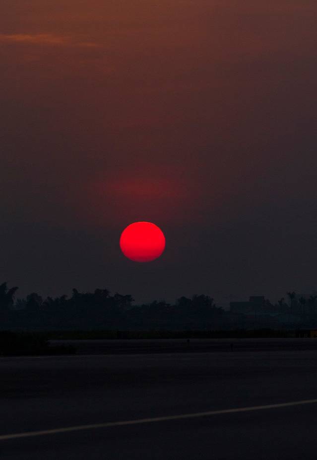 设的早上4点的闹钟,酒店最早送机车的5点,怕时间太紧张,预约了车4点半来接。来到机场见到要落下的红月(长焦的优势,lz得意的表情~),虽然只有凌晨5点,机场门口却已经很多人了,果然国际大机场,我深圳小地方机场不能比啊,花了不少时间才找到办登机牌的地方,9元航空,名字就告诉你了特点是会放出9元的超级特价机票。但是如果你的行李超过19寸,重过7kg就要补托运费了,所以一清早看到一排人在那里使劲从行李箱往外掏东西,没拍下来真是可惜。计划去买9元航班的要考虑清楚,算清行李需要补多少钱这样。