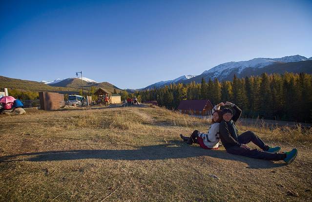 在院子里坐了坐,吃了些水果,享受了下慵懒的饭后时光,J妞像个小男孩一样。接着收拾行李走人了。回贾登峪去~ 后面那个也是最后拍的一张禾木了,手机片。
