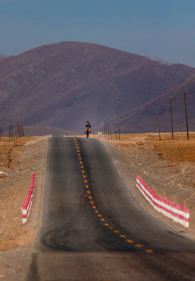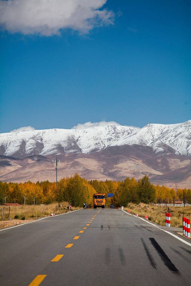 大西北的公路很直很长,来往的车辆并不多,等等总是可以遇到没有车的时候,拍公路片最合适了!!!!