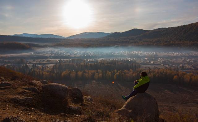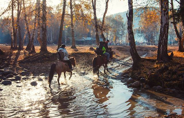 在喀纳斯新村,老板娘叫花姐,早上可以带上你看晨雾50块一个人这样。