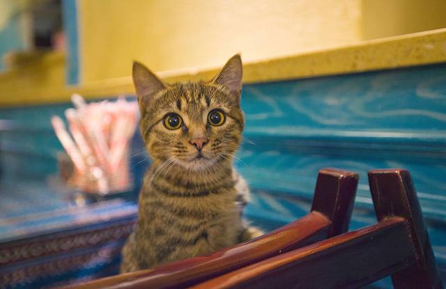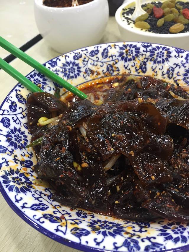 于是又滴滴到刀郎拌面,就在八楼对面(据说有乌鲁木齐最好吃的拌面之称!!)不过味道的确不错,拌面20rmb一份。里面不仅有羊肉还有羊腰子,J妞吃不惯,没吃多少。店里装修颜色很喜欢,还有只可爱的猫。