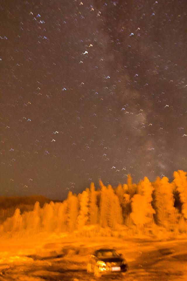 吃完饭,天才刚刚黑,我们要赖着师傅兜我们回卓尔山看星星,师傅吃的那么开心自然是答应了,但是祁连镇漫起的光害,虽然星星多,但远没有喀纳斯的震撼!