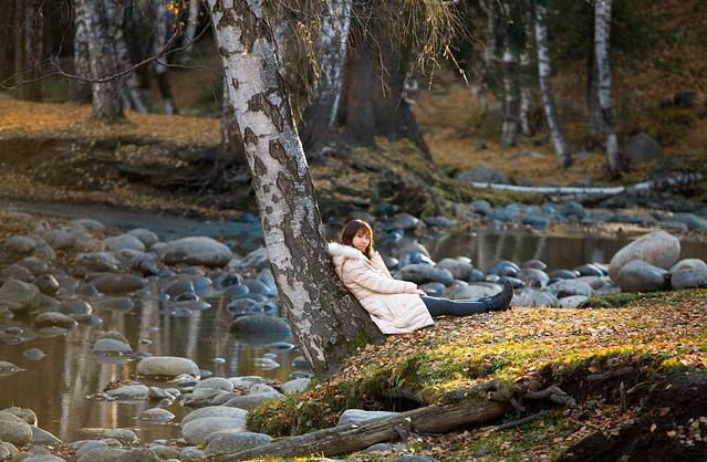 过了禾木桥,就是一片白桦林,6点的时间很好出片。