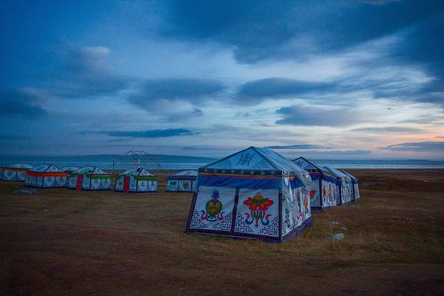 同样十一以后就会撤走,价格并不低,但是是这一片最好的日出观看点,出帐篷往海边走个十分钟就到青海湖边上了。