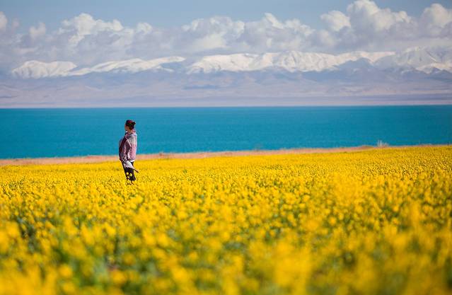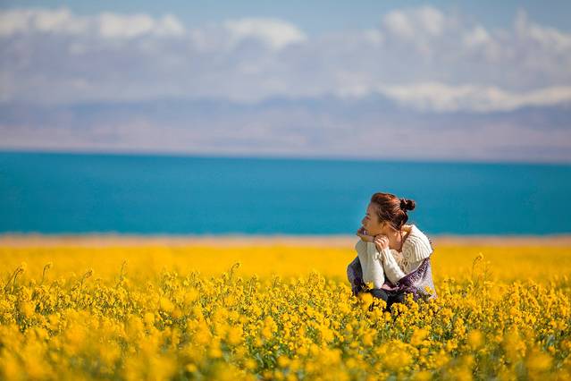 湖边玩到十点多才出发,虽说青海湖已经过了油菜花的季节,但还是有人移了一片过来,然后收些门票,一般开价二十,看口才可以讲点价。我们几个说不去湖边,就在油菜花拍拍照,于是收了我们十块一个人。