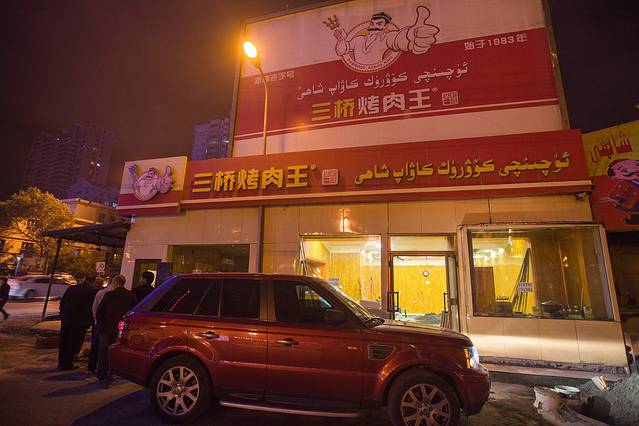 不过大巴扎那边的建筑挺有特色的,值得去看一看,8点多离开,天刚刚暗下来,之前来时的滴滴师傅是当地人给我们推荐了三桥烤肉王,从大巴扎坐公交过去也就只有三站,旅途中在异地坐当地的公车是一种有趣的感觉,虽然心里有点忐忑,但我们决定尝试下。当地巴士不是很大,人还挺多的,J妞还真有点像新疆人哈哈。可惜到那边发现三桥烤肉王那家店竟然在重新装修,老板跟我们说过两天就开了。