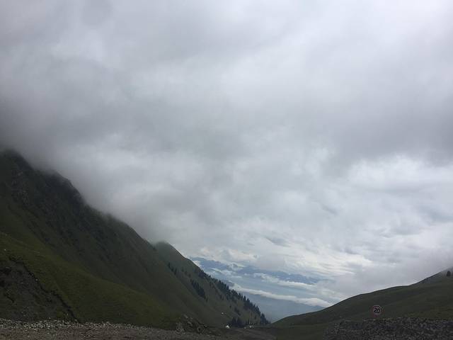 由于天山顶上下雨,什么也看不清,我们上去后稍作停留,便坐区间车下山。区间车上的服务员是一维族女孩,大眼深邃,鼻梁高挺,身材可与model相媲,也算是一道小风景,大家似乎又多了一点谈资。下午经过8个小时车程,夜晚赶到布尔津,宿神州大酒店。