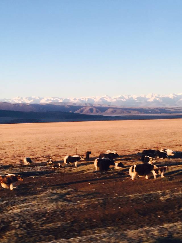 今天是最辛苦的一天,早晨5:30出发,晚上8:30才到吐鲁番。全程600多公里,一天都在路上。因为起的早,日出之时我们正好赶到天山一个标有海拔3640米的地方。我们停下来尽情的欣赏天山日出,雪山被映的彤红,雪山下的草地也随着日出的节奏不断的变幻着颜色,由橙入紫,由紫入粉,由粉入绿……更多的黑头羊、牦牛成群的扎堆在牧场,生命的活力在这高寒之地绽放!