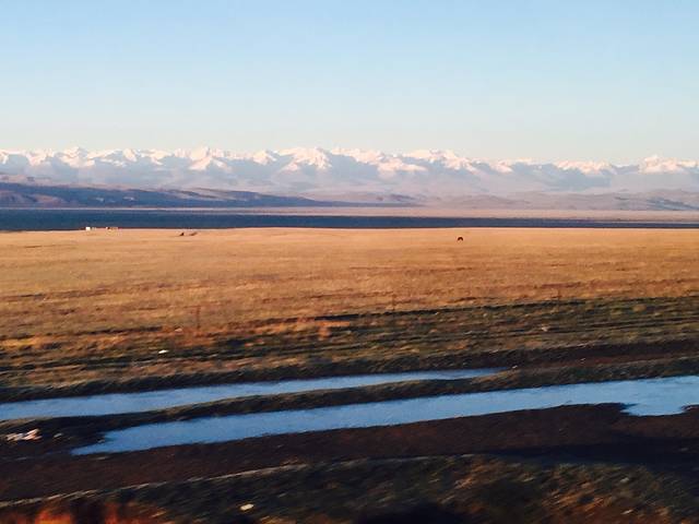 夜宿山下开都河边的一家宾馆,这条河就是《西游记》里的通天河,推窗可见雪山、草地、河流,十分惬意!