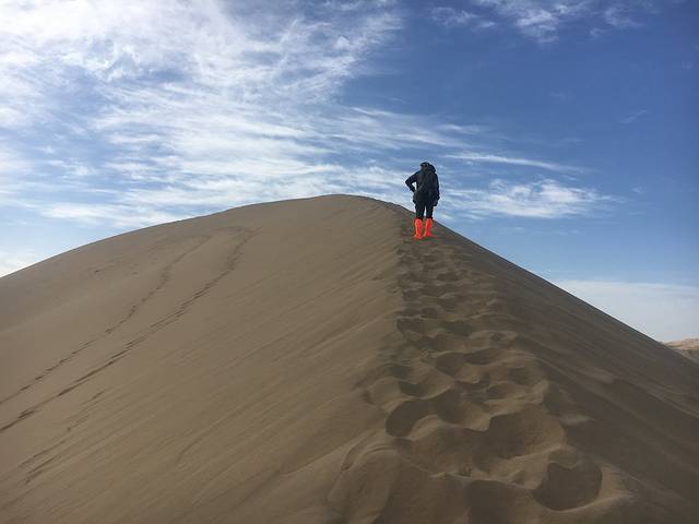 傍晚,我和一个不认识的旅友攀登了鸣沙山景区外的一座无名沙山,素爱登山的我在沙漠体会了不同的登山感受。