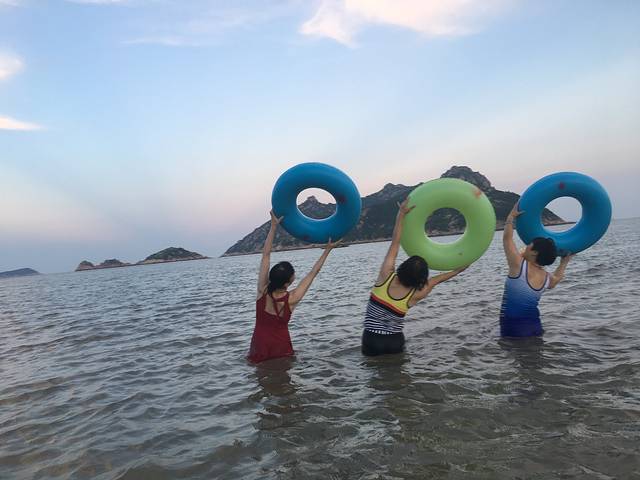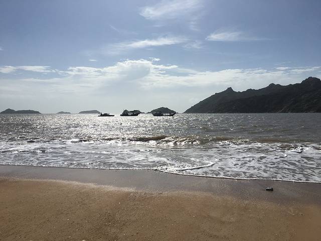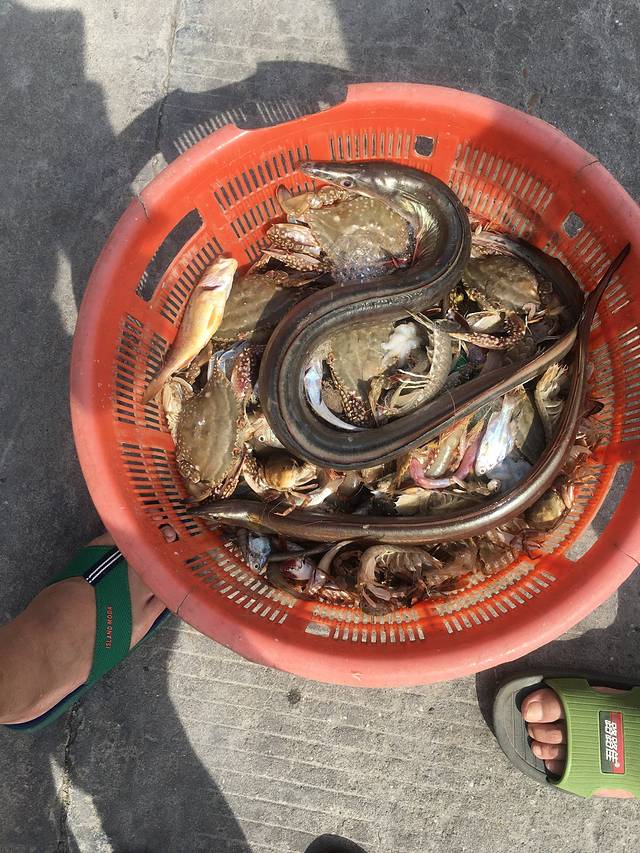 中午是在房东处用的餐。她们家兼营餐饮。第一餐烧得不错。下午我们就让房东联系出海捕鱼。当时听房东妹妹说可以帮忙免费加工。而且查了攻略也说是免费加工。实际上这个还应该跟老板娘好好确认。我们可是有浪费了食材的。捕鱼后收获的海鲜晚餐是像模像样的烧好的,但结帐时老板娘提出了意议。虽然当时是很好的解决了但第二天的海鲜我们人都没回就已经全部煮在那了,而且没分开烧。难吃,可惜了。因为想悠闲玩我们定了二天的住宿,因为这个觉得真心不舒服。而且大嵛山岛海边游泳的地方真的很少。金沙湾的沙滩只有涨潮时可以游泳,海水夹着沙。真的混。月亮湾那边的沙滩只有退潮时可以下海(但管理人员不见意下海,说目前还未建好防护措施)