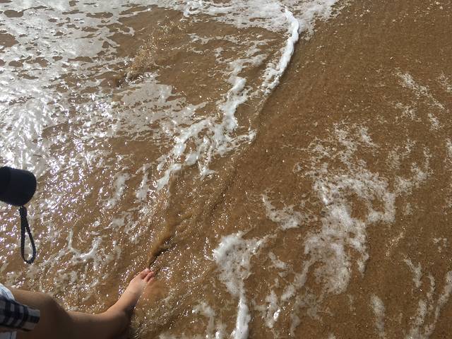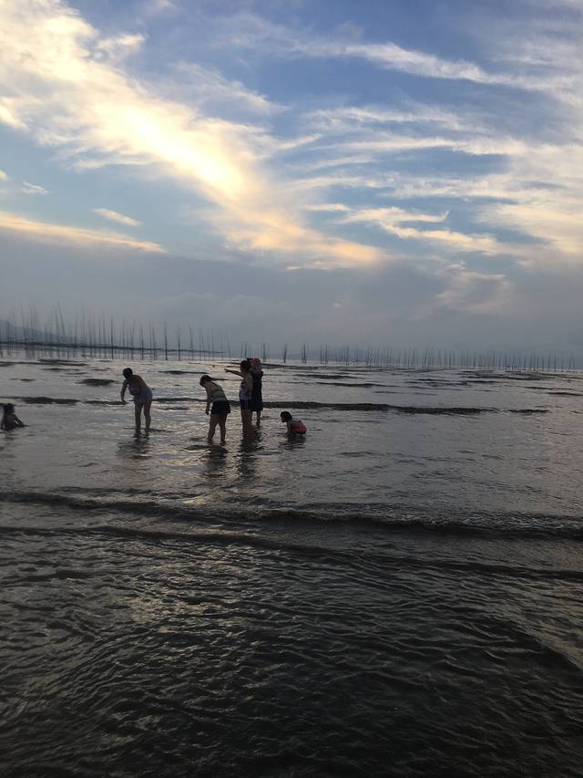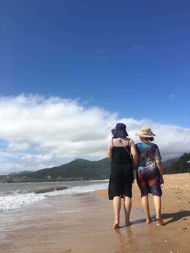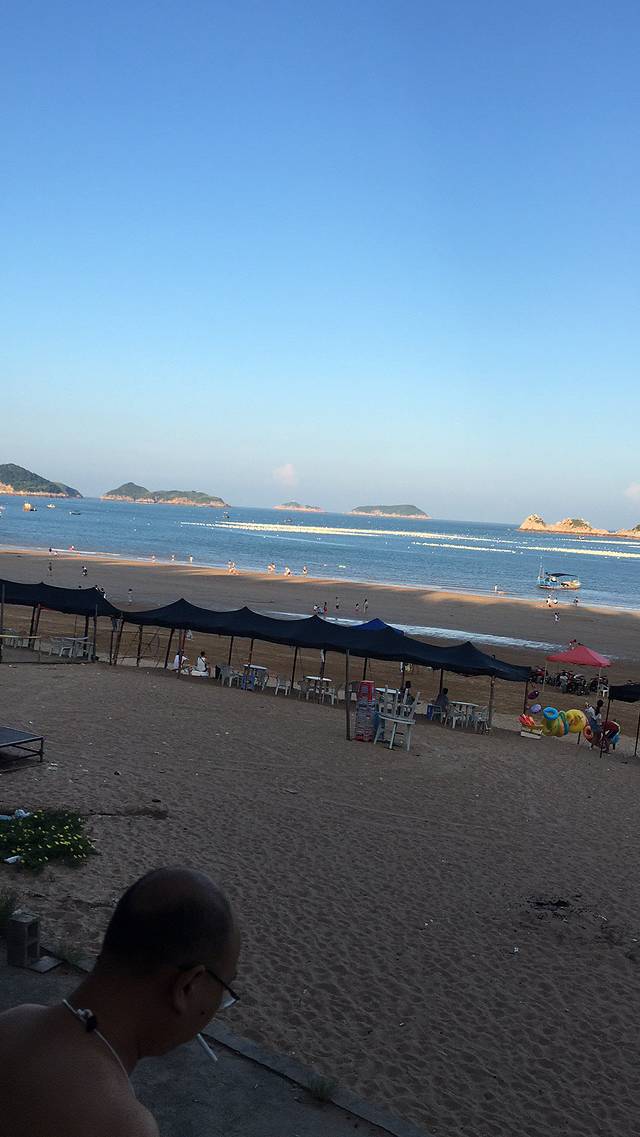 吃完饭,休息到下午五点,我们才下得海(因为太阳太晒)结果到最后没玩够。大京沙滩海岸线老长老长,如果没渔船开进来,水还是清澈的。游得老爽了!老妈第一次穿救生衣下海觉得挺好玩的。晚饭还是在那家海鲜馆吃