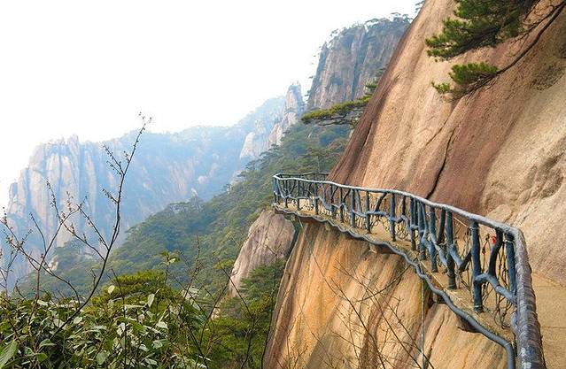 栈道很平稳,不过恐高的人还是要注意的,走在栈道和山间,清风徐来,令人心旷神怡,女朋友乐的一路摆拍。