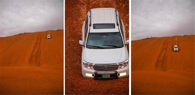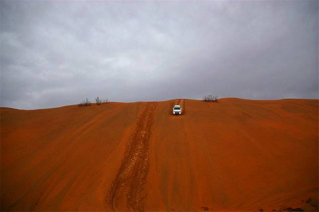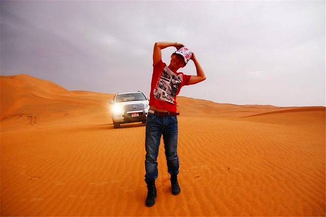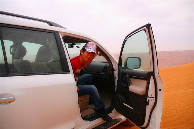 我来了,沙漠都下了雨,这等奇怪的事情都可以发生。但这不是重点,我更关心早上的冲沙会不会改期。沙漠下雨会造成车轮打滑、沉陷等现象,存在各种不安全因素,但我明天就要离开阿布扎比了,过了今天就没有机会体验独特的沙漠activities了。可能我带来雨水的“神马”功力起了作用,组织冲沙的两位师傅竟同意为我们冒一次险,实现我们这一千零一个心愿。