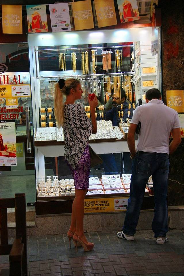 迪拜除了石油什么最出名,当然是黄金了。你能想到的任何一种黄金和珠宝,传统到现代,时尚到保守,这里都能找到。万一找不到,当然也可以委托定制。不过,这里黄金大多是22K的,24K的仅限于一些金牌或金币