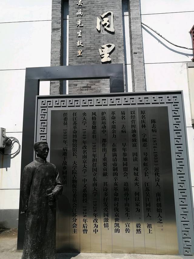 没把车停在停车场,就街上找到了个停车位停了,免费,步行三百米左右吧就到了陈去病的雕像这,好像他的故居也就附近但是我没进去!
