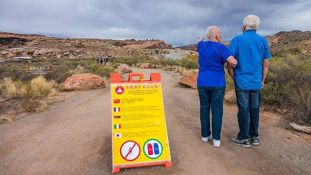 这个提示在公园的主要景点入口都能见到,大意是必须携带足够的饮用水