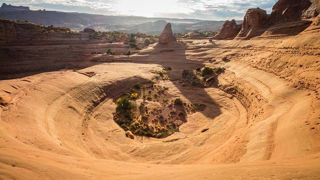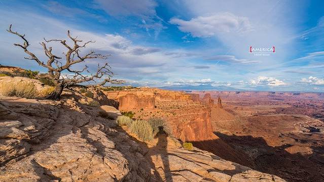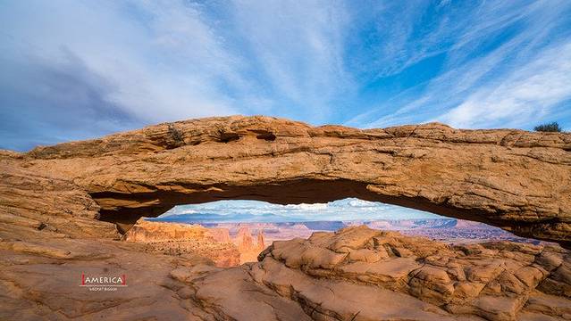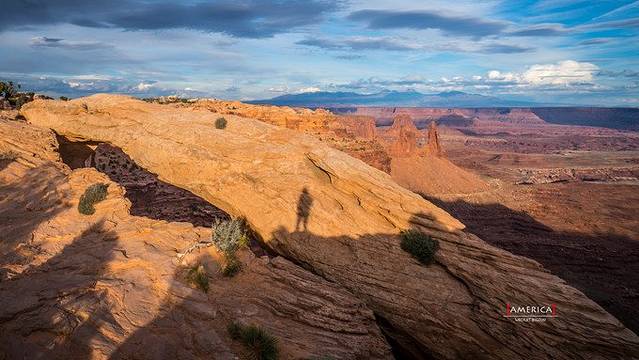 峡谷地国家公园位于美国犹他州东南格林河和科罗拉多河汇合处,系多年河流冲刷和风霜雨雪侵蚀而成的砂岩塔、峡谷等,成为世界上最著名的侵蚀区域之一,以峰峦险恶、怪石嶙峋著称于世。透过梅萨拱门看广阔原野和千沟万壑,看裂缝和雪山,完全是不可多得的视觉享受。