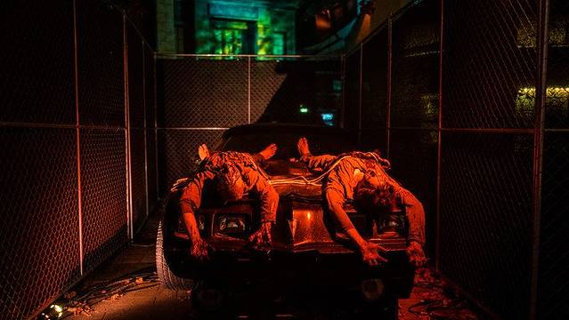 按不同影视作品布置的鬼屋说起来效果还挺震撼,但是游客如织,大家都人跟人走着呢,哪来啥恐怖感啊,无非就是有装扮成丧尸之类的工作人员会在你意想不到的地方跳出来吓一下人而已,