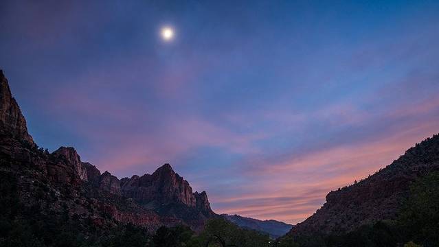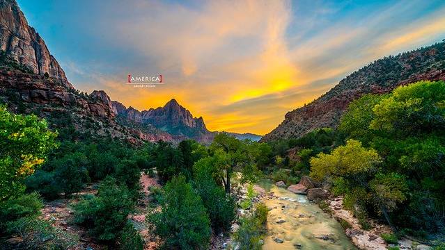 锡安国家公园位于美国西南部犹他州。占地共229平方英里,首要景点是宰恩峡谷,长15英里,半英里深,其红色与黄褐色的纳瓦霍砂岩被维琴河北面支流所分割。其他著名特色有白色大宝座、棋盘山壁群、科罗布拱门、三圣父与维琴河隘口。