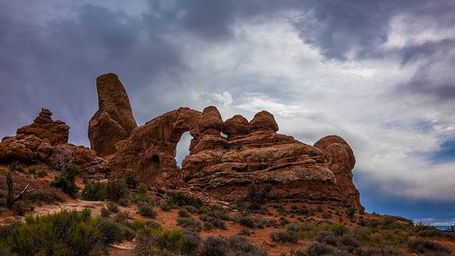 拱门国家公园 (Arches National Park) 位于美国犹他州东边,占地76,519英亩(309.7平方公里),每年约有85万访客。有些人来此地是为了研究地质学,或者是对大自然的演变感兴趣;当然更多的人是为了想一睹闻名遐迩的拱门,然后向别人描述经验。无论动机为何,它的雄伟壮观及研究价值绝对是受到肯定的。