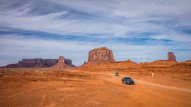 租用四驱JEEP实在是太明智了,在纪念碑谷完全不受限制,那些个轿车自驾来的游客就吃力一些,需要换成公园内的四驱皮卡进行游览,虽然不用自己开车,但是,皮卡的游览车座位都在货兜里,一路吃灰。。。