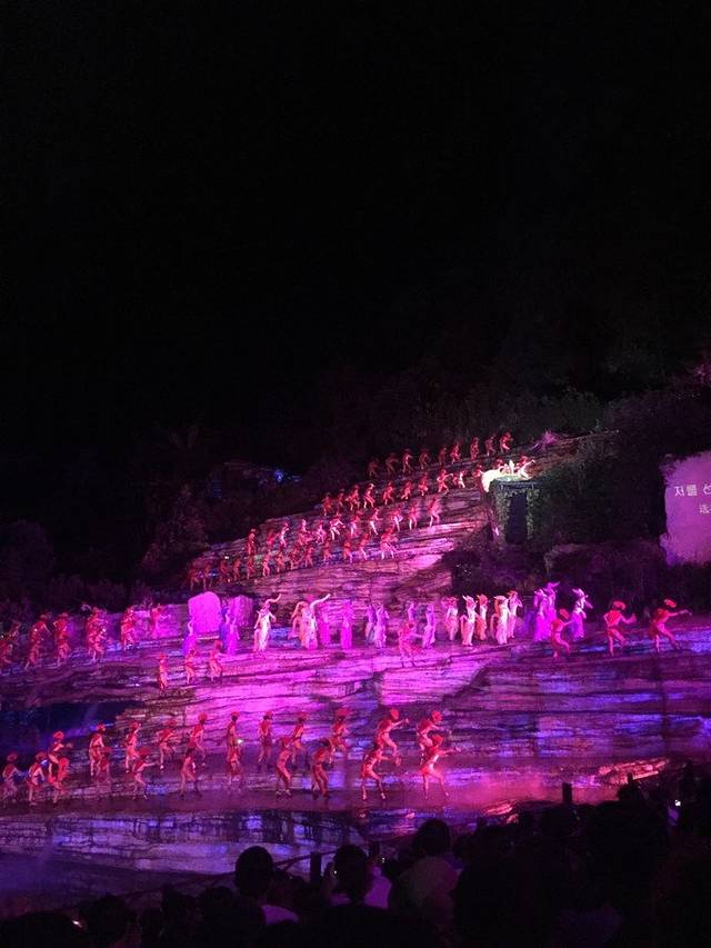 带着孩子们看了天门狐仙的舞台剧。和城市里搭建的台子不一样,这里的台子就在峡谷上,山林里,环境非常好。小朋友们这是第一次在这种环境里看舞台剧。看的内容是《新刘海砍樵》,同样是小朋友第一次看。具体内容就是樵夫刘海爱上了天门山里的白狐仙。剧情没什么新意,新意在于这里有当地民歌,民风,所以说相对还比较有特色。