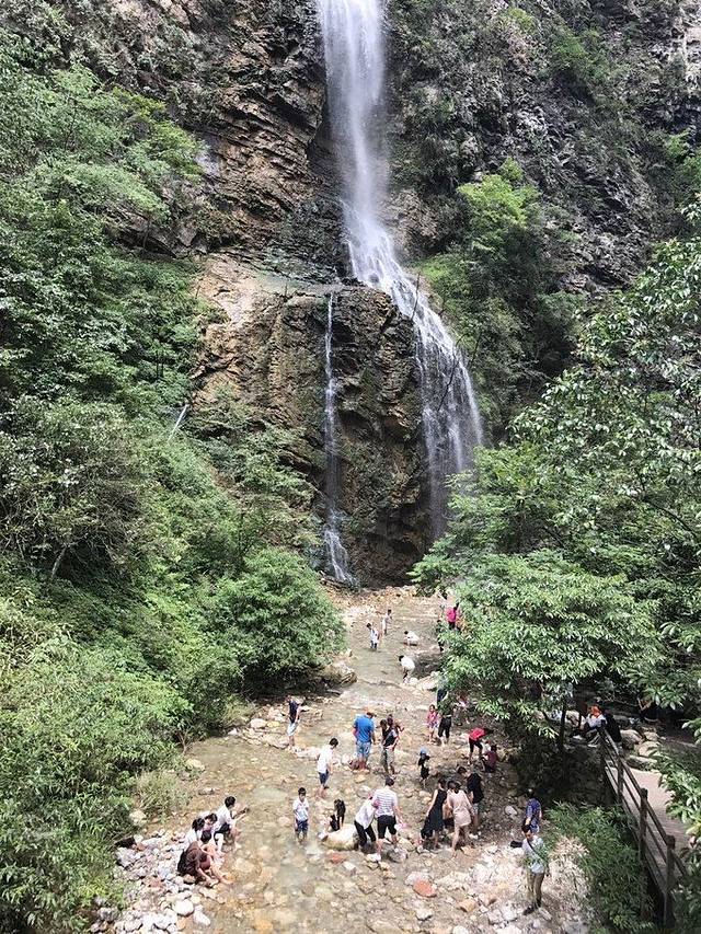小朋友们对瀑布的喜欢远远超过对山的喜欢。好多孩子都在附近玩。从瀑布上留下来的水很清澈。本来水面也不高,是最佳玩水环境。