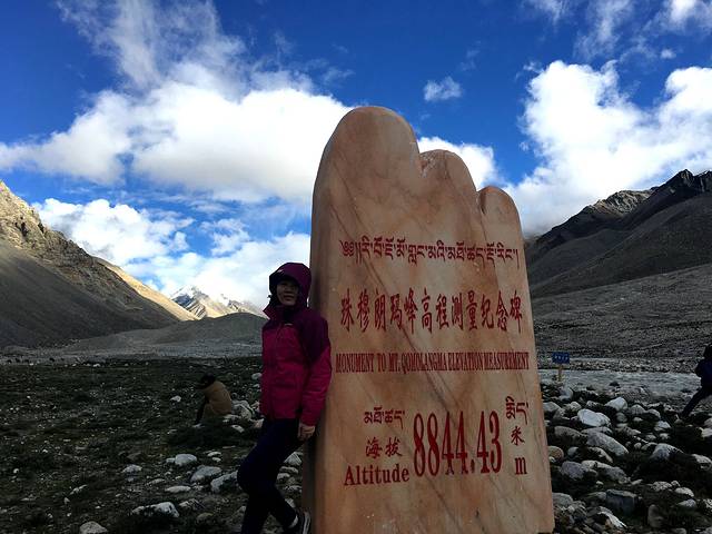 当时在朋友圈放了这张照片,好多朋友都误会我们已经到了这个高度,这就尴尬了,这只是一个测量纪念碑。现在人类常居住高海拔也就是5000多米,一般人适应不了6000米以上的高海拔,像普通游客到珠峰大本营后就不允许再往上了。所以我说8844还是留给专业登山选手吧😄。