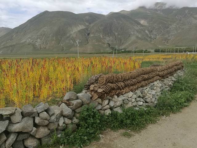 摞起来的是牛粪,所有老式藏民居都用这个晒干堆围墙上,是重要的燃料。