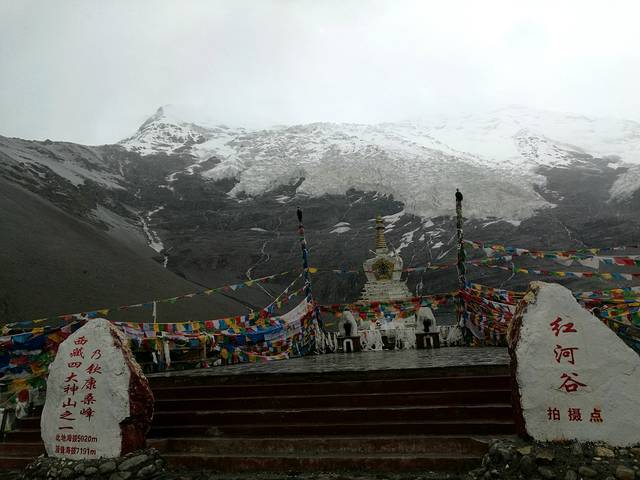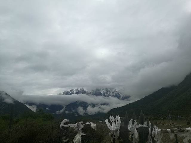 南迦巴瓦峰有“西藏众山之父”之称,终年积雪,云雾缭绕,从不轻易露出真面目,传说十人九不遇,所以也被称为“羞女峰”。天气不太好,云层太厚,从入景区的最佳观景台到景区里,它一直不肯露出庐山真面目。