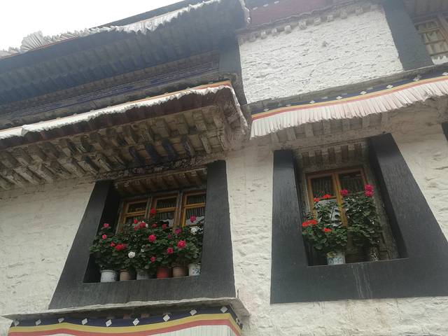 西藏人很爱在窗台养花,而且花开的真不错
