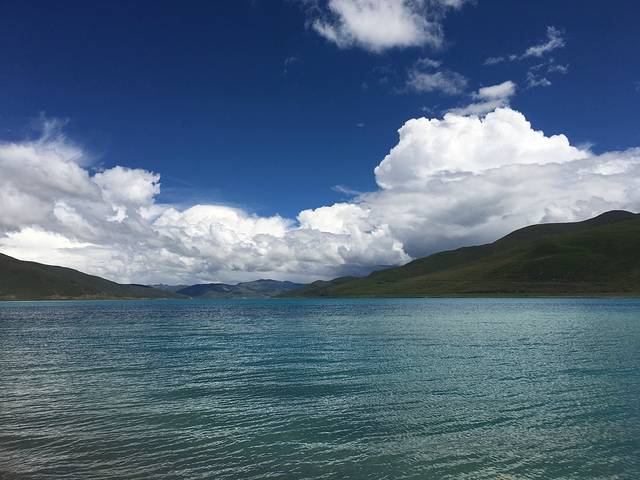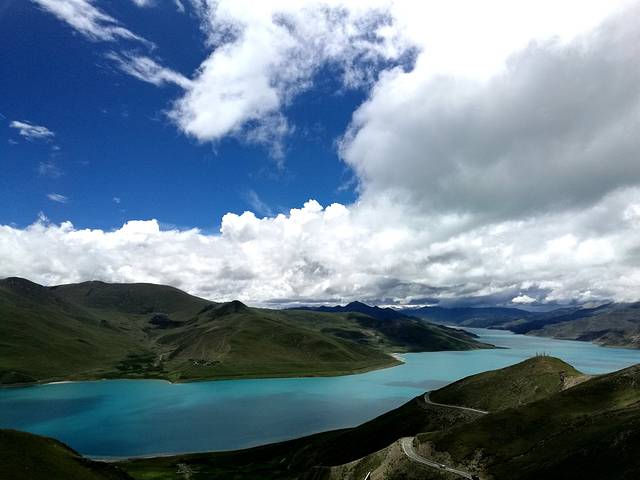 羊湖就像一条蓝丝带蜿蜒在高原上