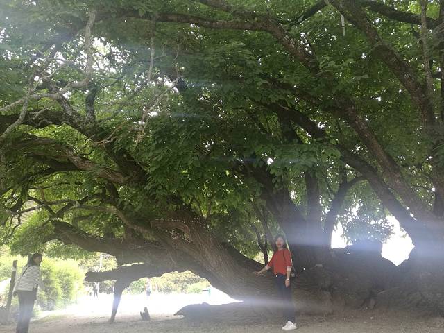 这棵树树龄有1800年了,导游说是发财树,赶紧抱一抱。