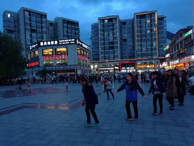 内地流行广场舞,林芝的广场舞就是围成圈圈跳藏式舞蹈,男女老少齐上阵。