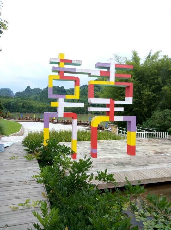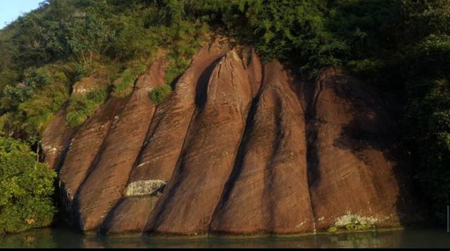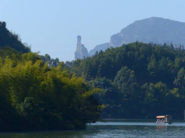【第二大站水上丹霞】这也是这次旅游我为之兴奋的行程,没有之一!每个来丹霞山旅游的人都能见到,进入景区,桥的右手边,水上丹霞码头这六个大字和水上丹霞的游轮静静的停泊在岸边,船身显示出被雨水滋润的颜色,两岸的彩旗随风摇摆,就好像五颜六色的手在挥着告诉游客“欢迎来到水上丹霞”,而睡美人若隐若现的呈现在我眼前。先上一张水上丹霞五彩石啦。