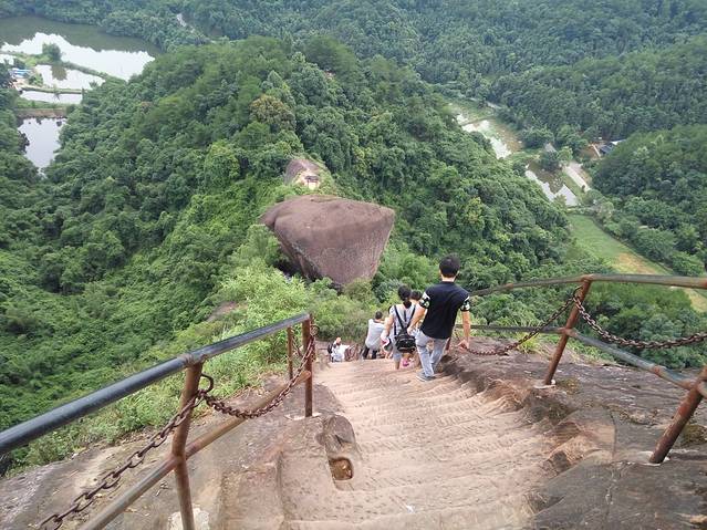 沿着楼梯阶走不远就是一个阳元石的观赏点。它高28米,直径7米,是世界同类山石中最高大的,堪称世界一绝。