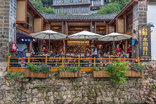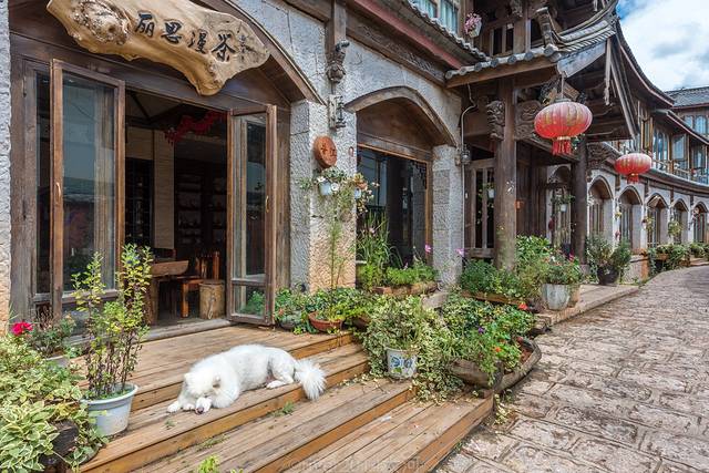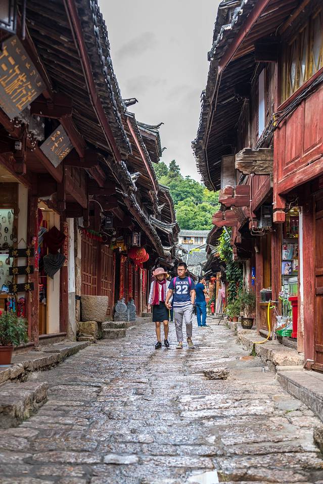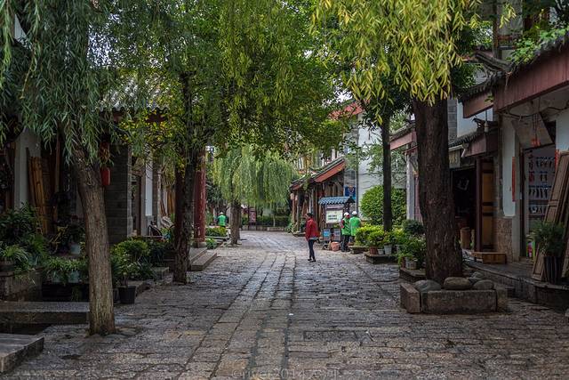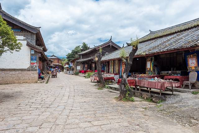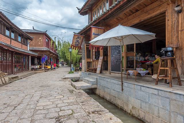老街上全是木制老房子,造型统一,街边开了几家咖啡馆和餐馆,也有客栈,但是游客少得可怜,生意没法跟大研和束河相比,一般游客来到老街上逛一两个小时就回去了。