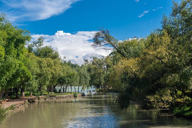 天气晴好的时候,蓝天白云倒映在水中,更显得天地广阔。