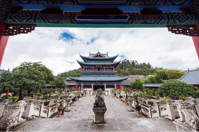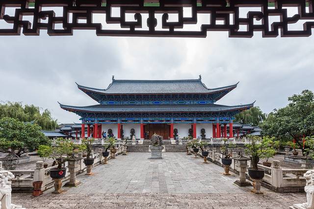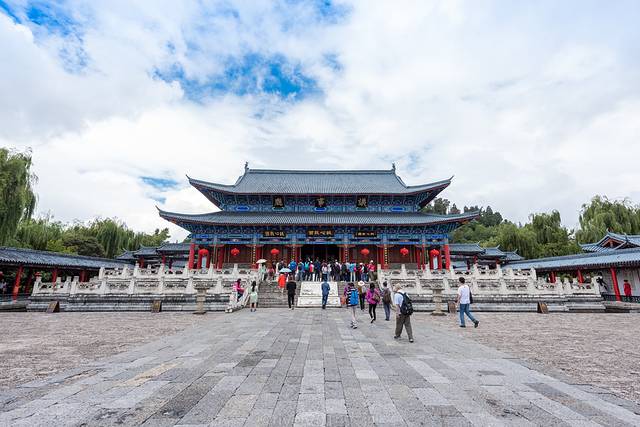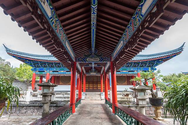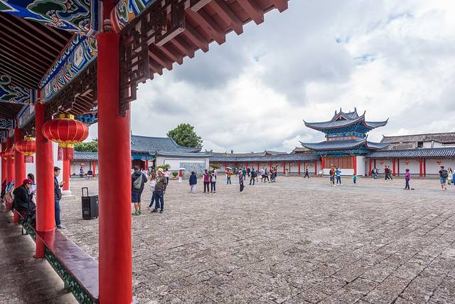 这么说是有道理的。刚刚进入木府大门,是一个宽阔的广场,建筑格局就像是小了一号的故宫。