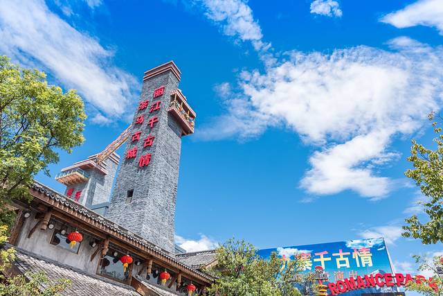 丽江千古情景区,以演出为核心,在等待演出开始的时间里,可以在景区转转,景区里各种与游客互动的节目,仿佛穿越回古代的建筑风格,总让你感觉这里与众不同。