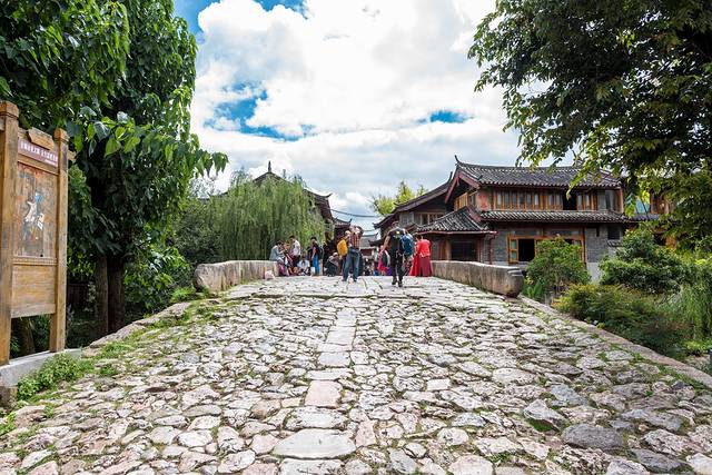 束河也是茶马古道上的重要集镇,这里如同一个小型的丽江古城,有四方街,有无数的客栈民宿和饭馆,还保留着马帮的习俗,游客可以骑马游览。青龙桥建于明朝万历年间,距今已有400多年历史。