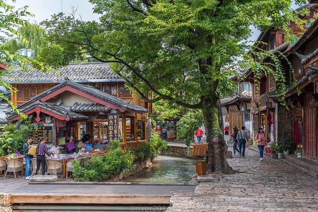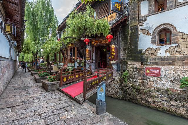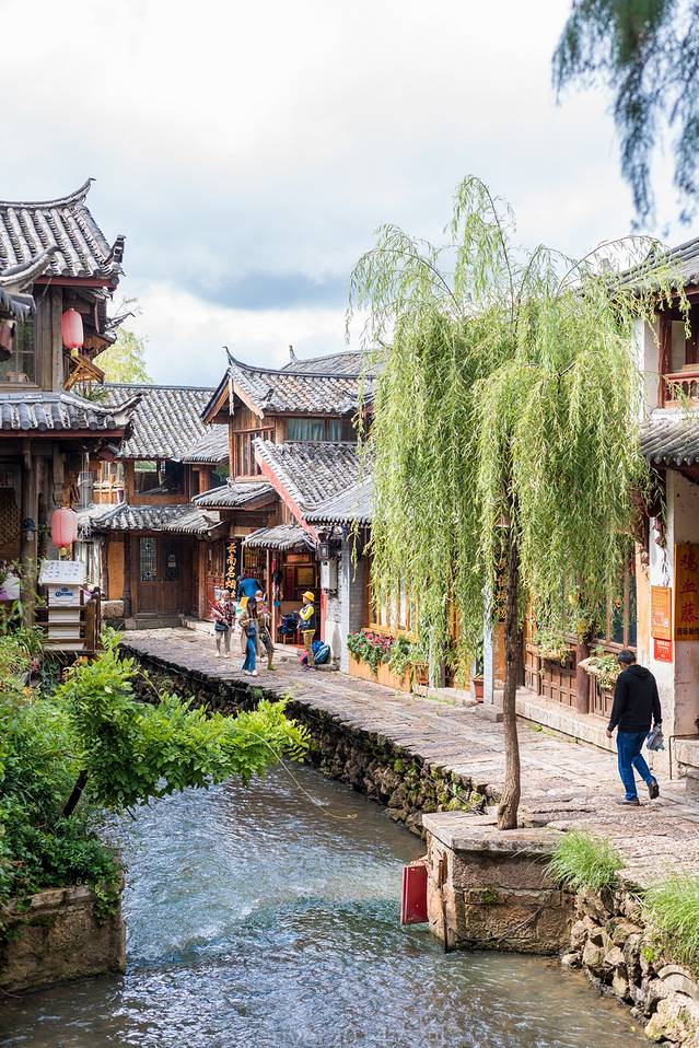 大石桥是丽江古城的标志性建筑,古城内有完整的水系,这水就是来自古城北边的黑龙潭,水质清澈,河街相邻,绿柳低垂,就如江南水乡一般。