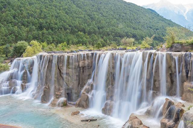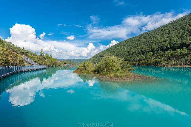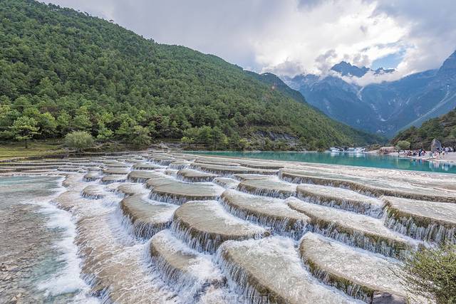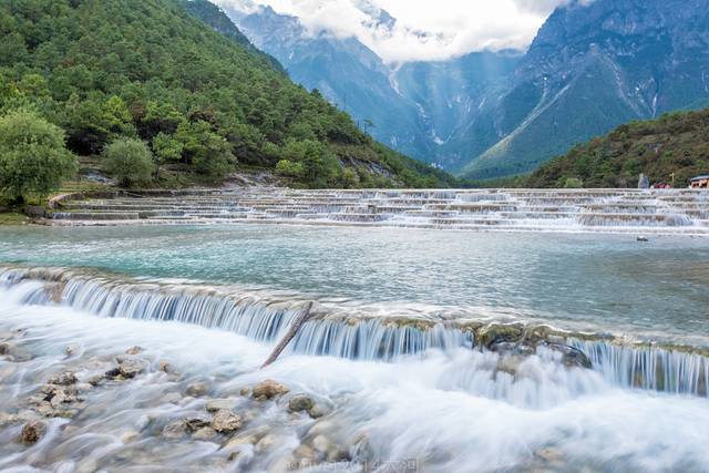 蓝月谷的白水台,跟四川九寨沟旁边不远的黄龙很像,水一层一层的流下来,清澈见底,因为河床的泥是白色的,蓝月谷也叫白水河,显然蓝月谷这个名字更好听一些。