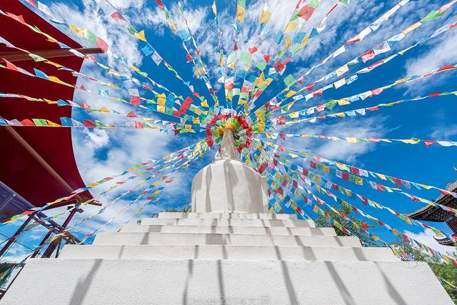 刚刚进入大门口的白塔和五彩经幡,在丽江的蓝天下格外鲜艳夺目,里边的内容才更精彩。