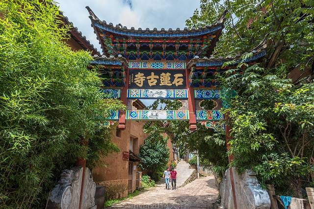束河古镇的石莲寺不太引人注目,这里幽静偏僻,一路上爬山,山并不高只有几十米,可以看到大半个束河古镇。