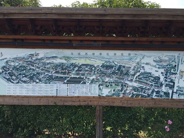 石道走没多远是正在装修的乌镇大剧院,桥上的风景总是很美,水也比东栅清爽点(图六)。桥下乘凉的鱼苗清晰可见,希望你们少吃点,不要长大。走到景区图(图七)这里,下面就不再分享了,因为西栅是真大!把东栅放西栅的肚子里还得咣当咣当响,所以请来玩的朋友开启随意乱串模式……