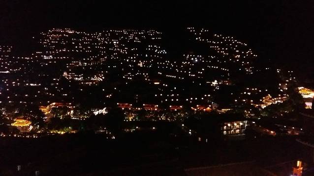 全景,左边是观景台的夜景,右边是寨子的夜景